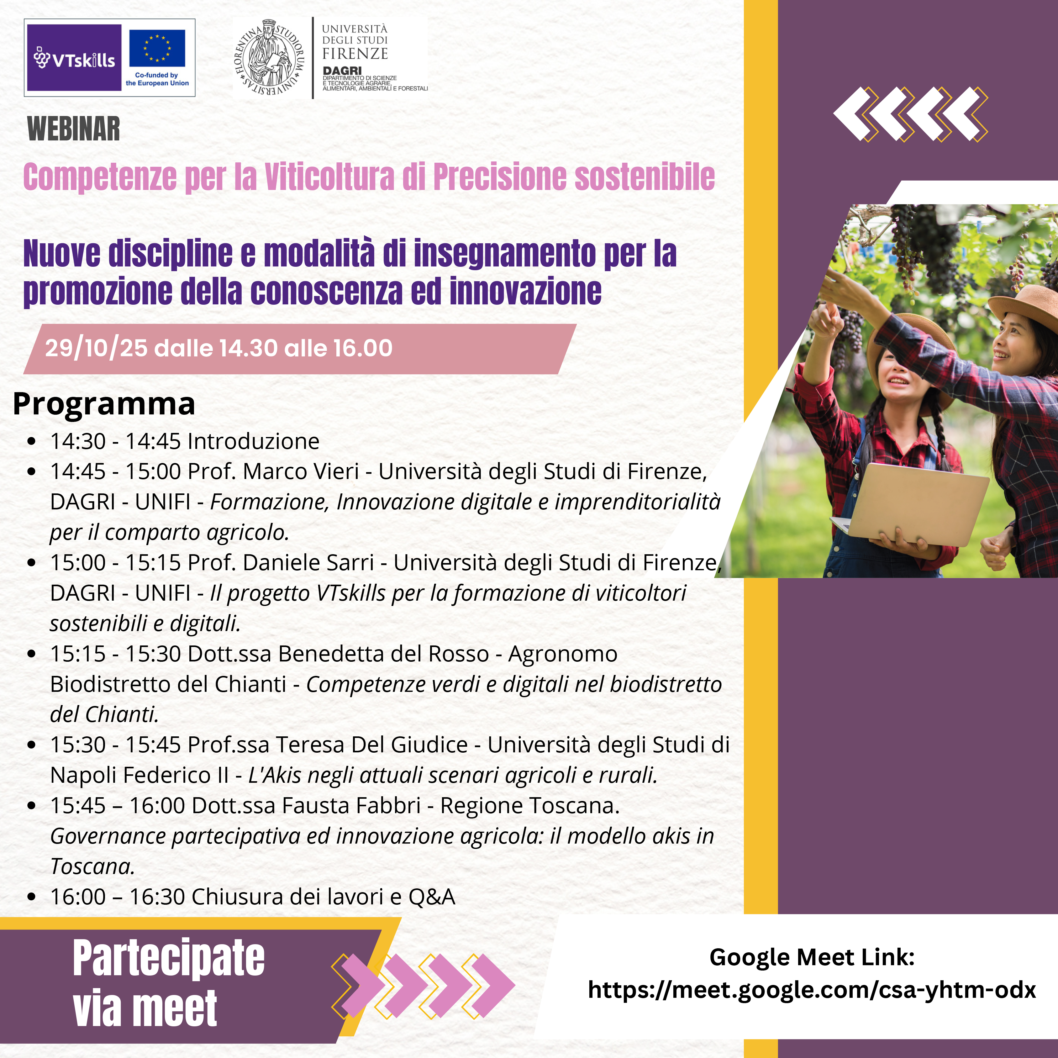 "Competenze per la Viticoltura di Precisione sostenibile: nuove discipline e modalità di insegnamento per la promozione della conoscenza ed innovazione"